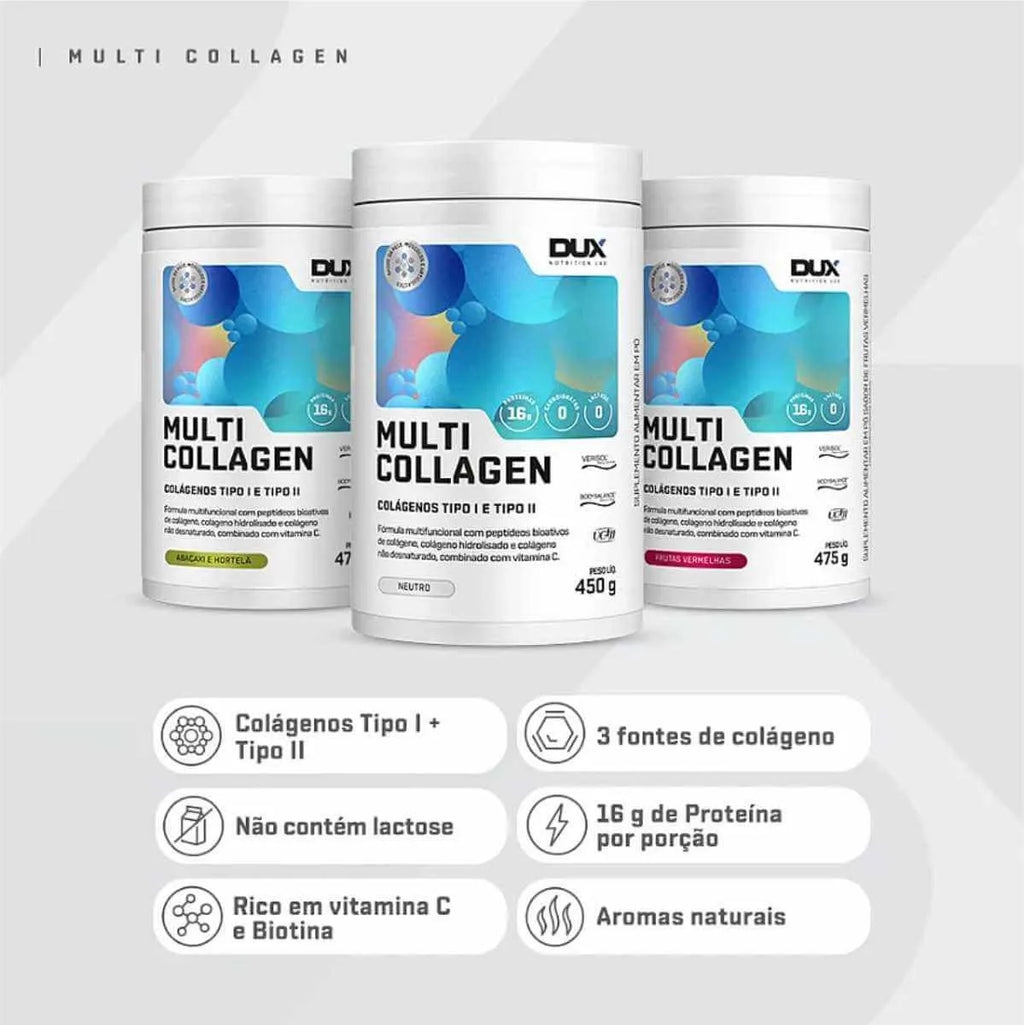 Multi Collagen® é para quem busca uma fórmula avançada de colágeno para cuidar da saúde da pele, músculos e articulações, com benefícios multifuncionais em um único produto Reposição da perda natural de colágeno que acontece com o envelhecimento, além de ser uma fórmula multifuncional para cuidar da saúde da pele, músculos e articulações.